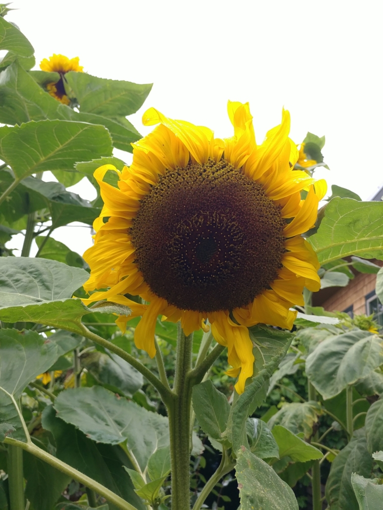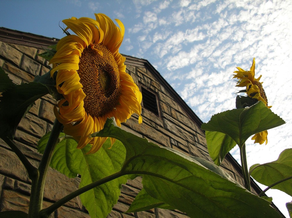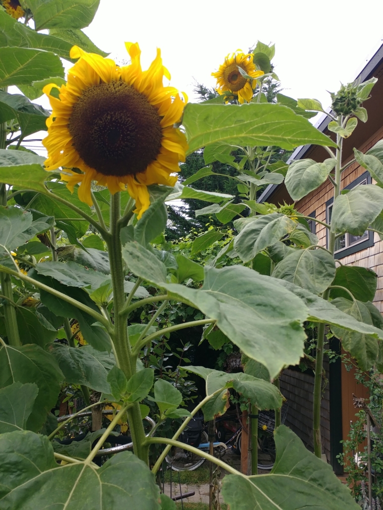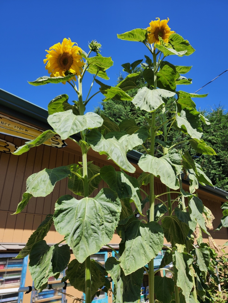 Since 2005, Tinkertopia has been developing heirloom Father Bill “Bix” Bichell mammoth 11 foot 11 inch tall anti-nuke sunflowers.